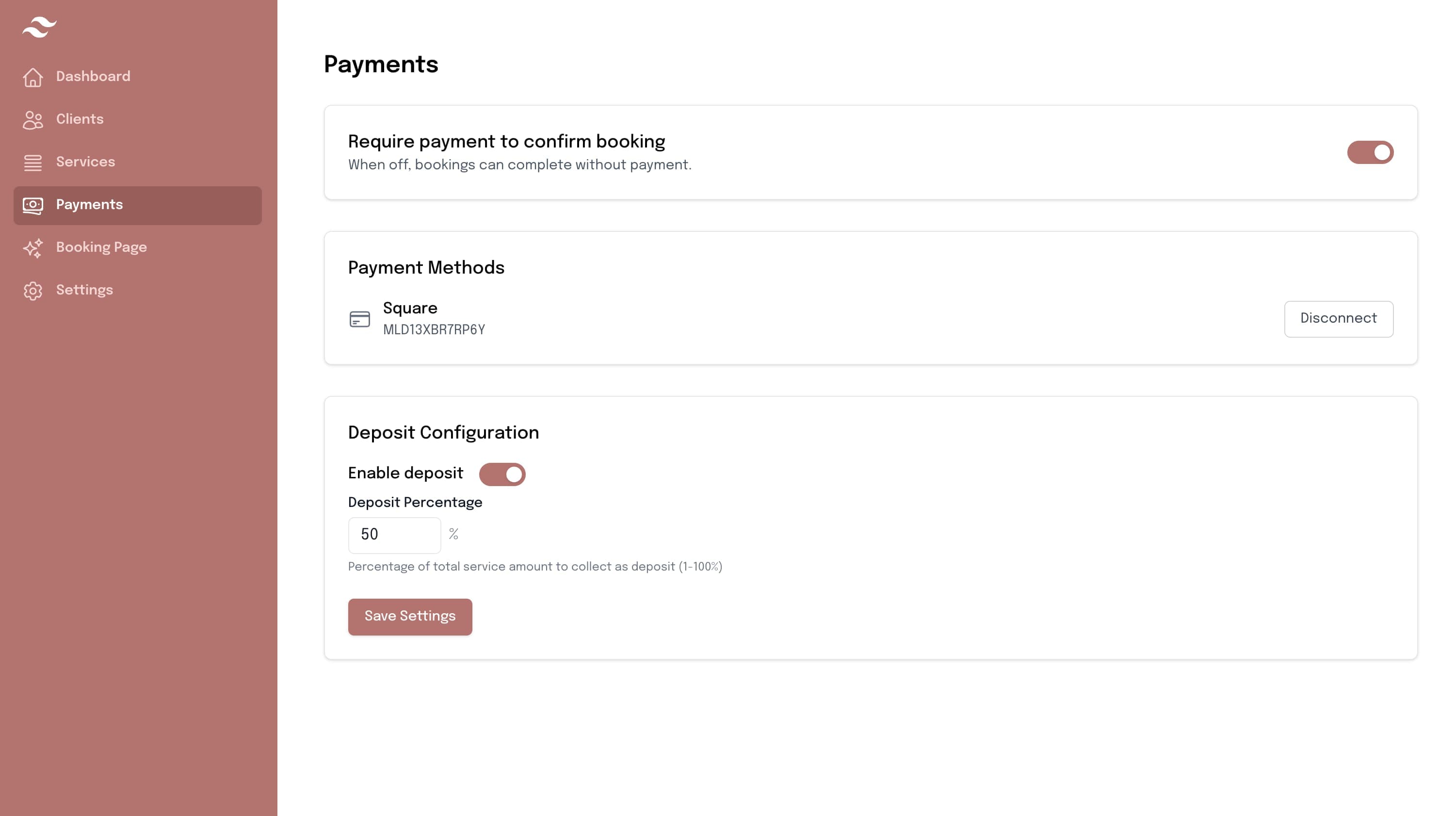 Let clients book online and pay a deposit up front. You never deal with no-shows or unpaid appointments again.