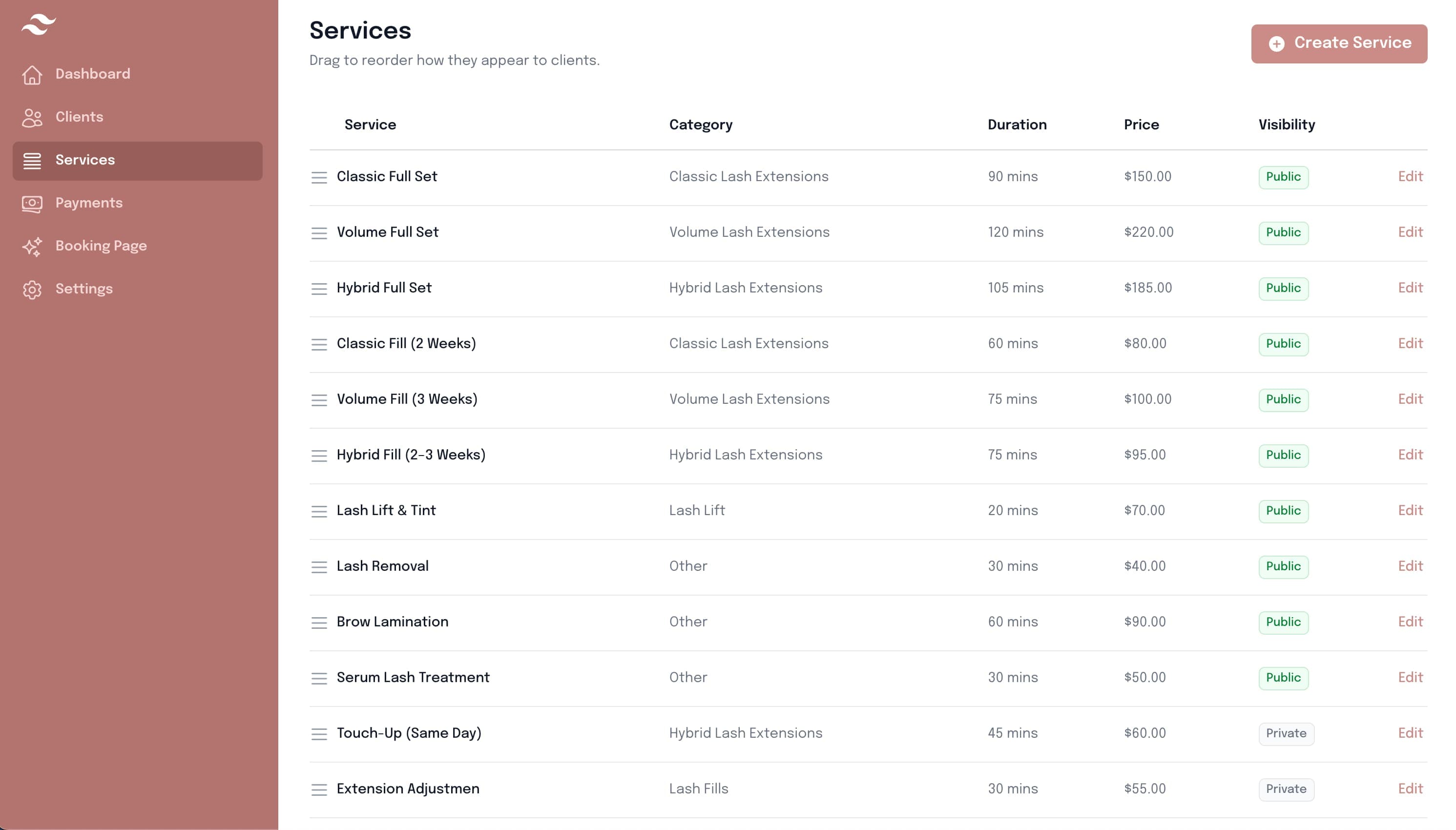 No setup fees, no complex tiers. Just one affordable monthly plan for everything you need to manage your lash business.